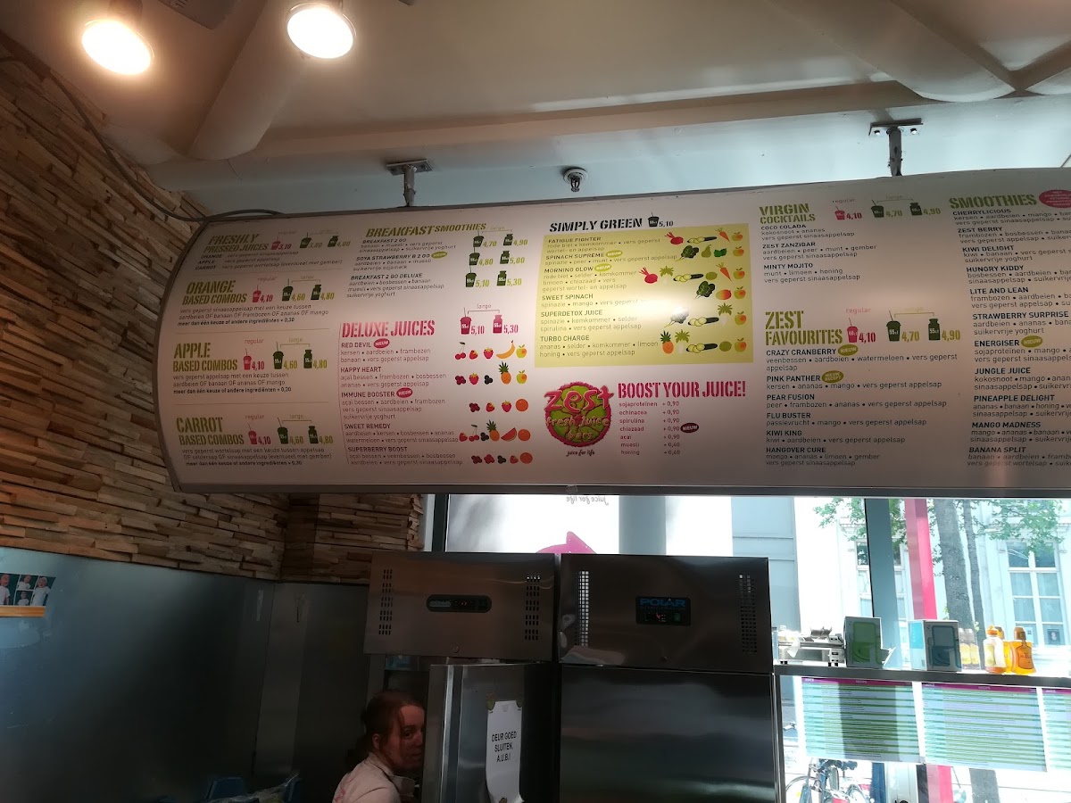 The menu at Zest Fresh Juice Bars offers a vibrant selection of refreshing options, ideal for anyone looking for a healthy and flavorful break. One of the standout offerings is the Mango Madness, a delightful blend of ripe mangoes that transports you to a tropical paradise with every sip. The juice bars focus on using fresh ingredients to create an invigorating experience for their customers. In addition to their signature juices, they provide a variety of smoothies, each crafted with care to highlight the natural flavors of the fruits. Whether you're in the mood for a revitalizing start to your day or need a post-workout pick-me-up, Zest Fresh Juice Bars has something for everyone. The emphasis on quality ingredients and bold, fruit-forward flavors makes it a go-to spot for health-conscious individuals.